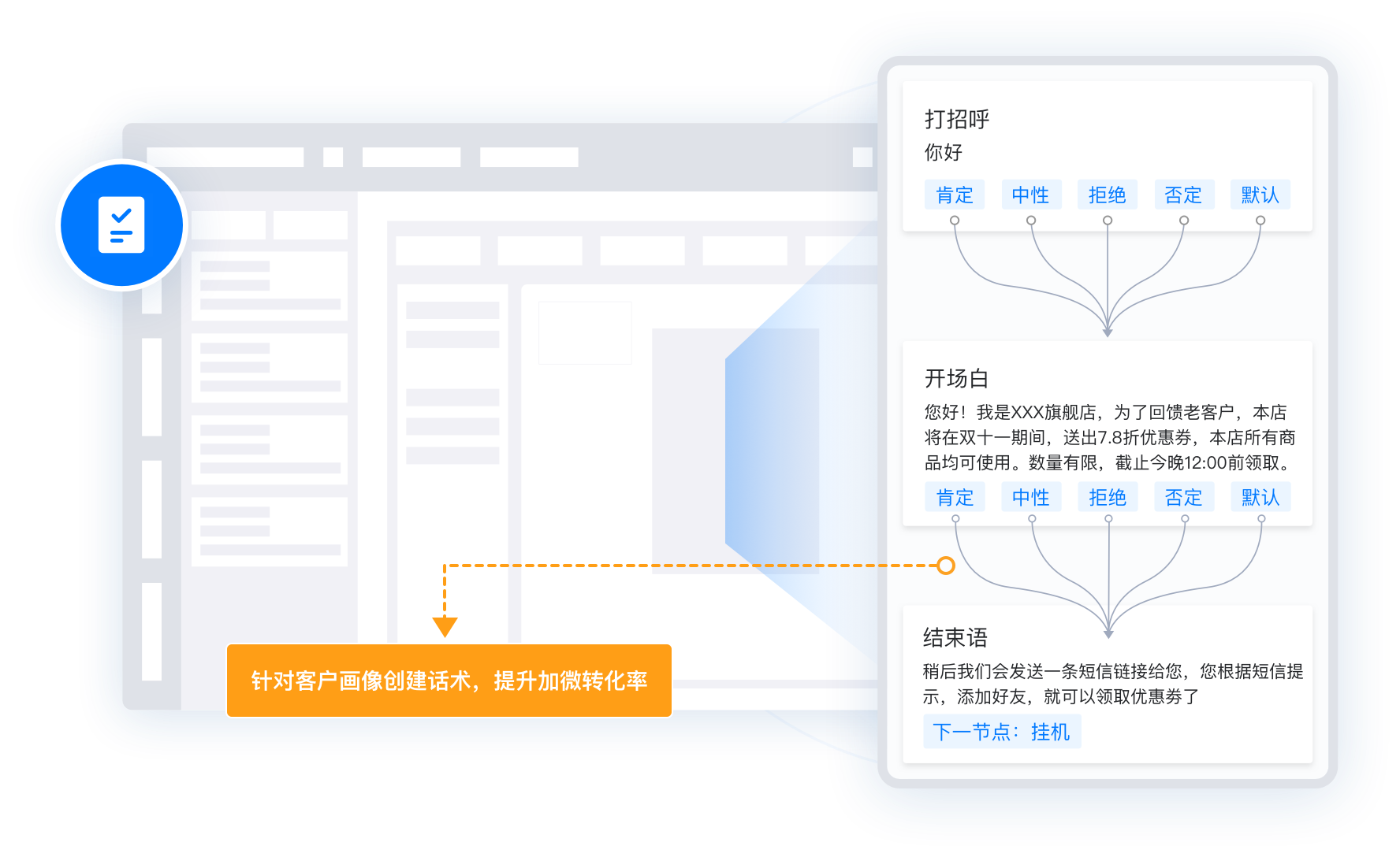 通过AI智能机器人外呼将客户引入私域,利用管理工具对客户进行标注和分组并建立社群,针对不同的客户群体精准推荐产品有效提升成交率。
